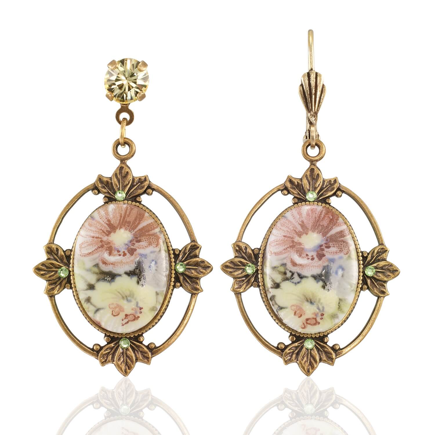 Classic, timeless and vintage-inspired, these Anne's Vault floral spring earrings are the perfect statement for the season of renewal. Delicate and softly detailed featuring antique stones and brilliant crystal, perfect for Mother's Day, Valentine's Day or any special occasion. Made in the USA with antiqued brass lead/nickel free white metal castings.