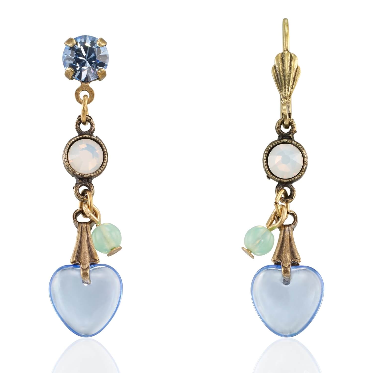 Blue Glass Heart Dangle Crystal Charm Jumble Earring