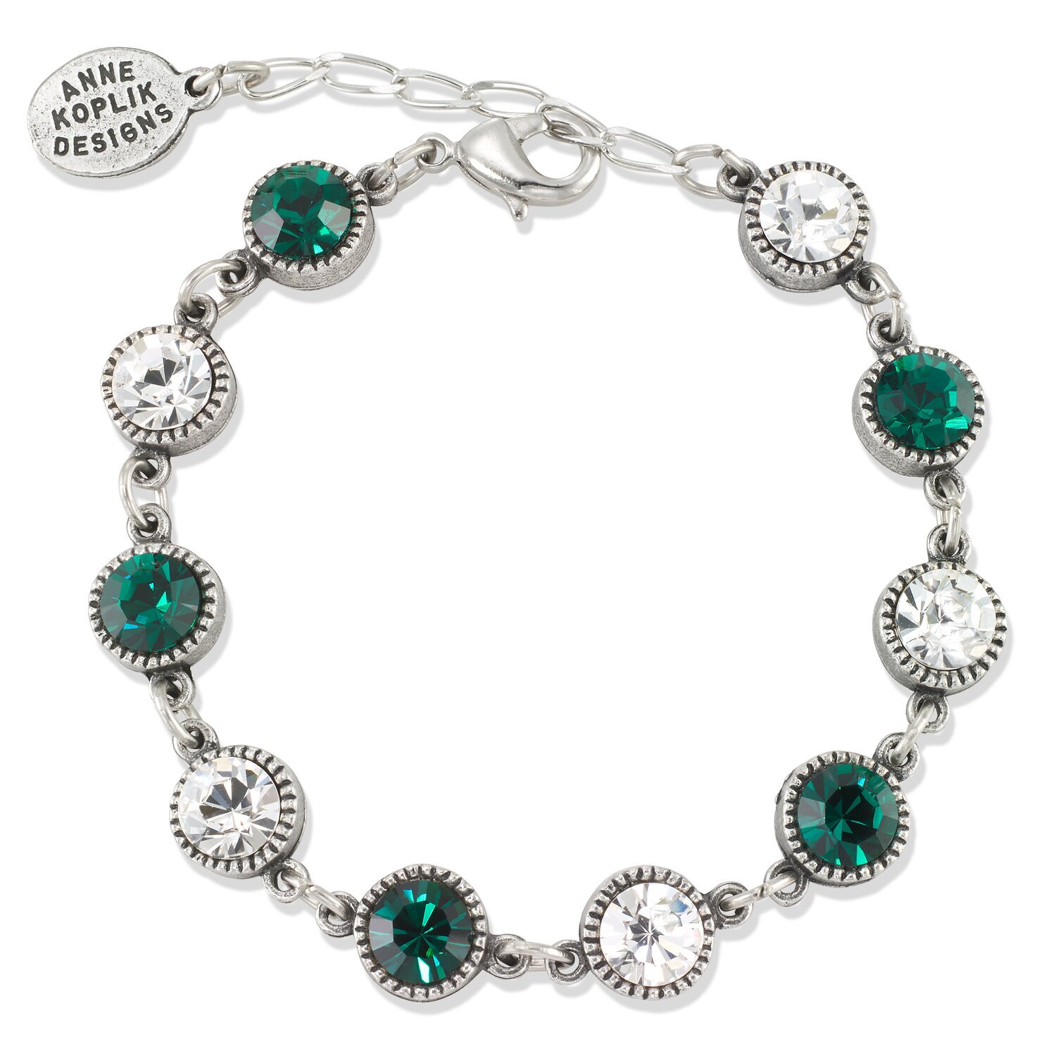 Classic Green and Crystal Drop Vintage Inspired Bracelet