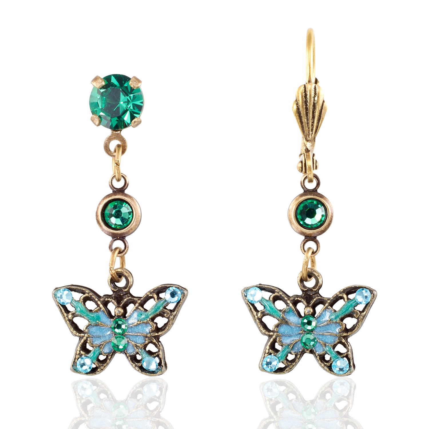 Filigree Green Enchanted Garden Butterfly Crystal Earring
