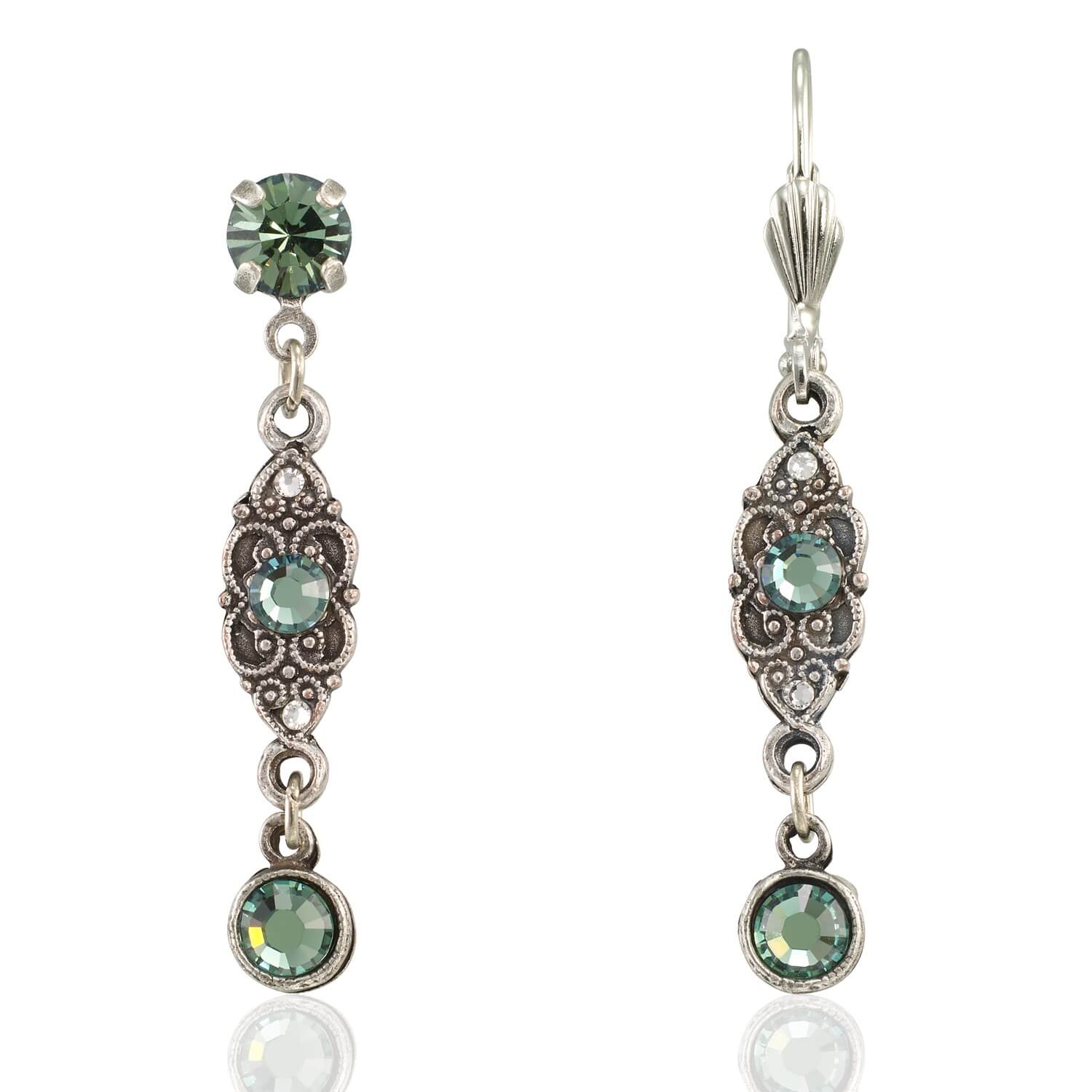 Forever Green Vintage Inspired Filigree Crystal Drop Earring
