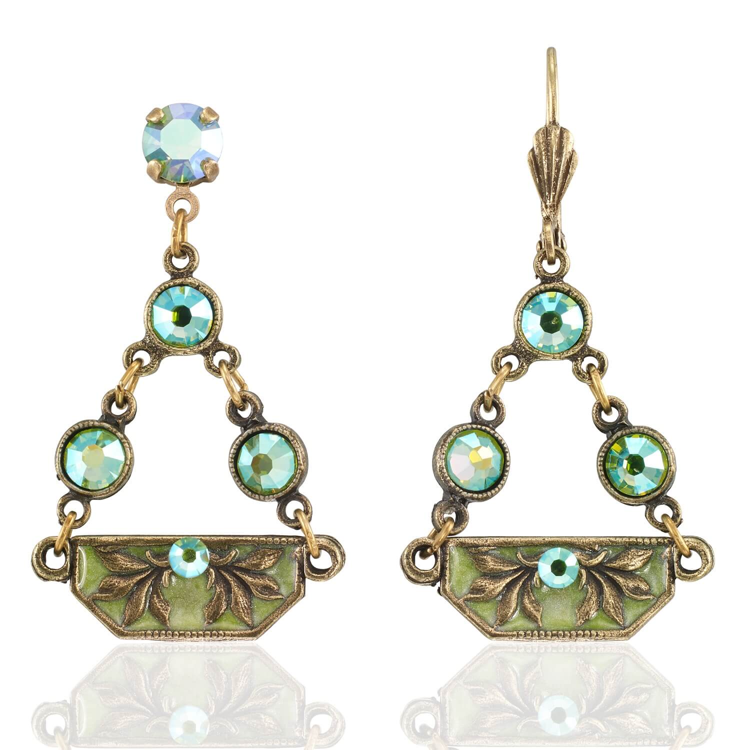 Spring is a time for growth and renewal, the Green Lotus Crystal Collar Earrings are made to shine and sparkle just like dew drops on a green leaf. Made in the USA with antiqued brass lead/nickel free white metal castings.