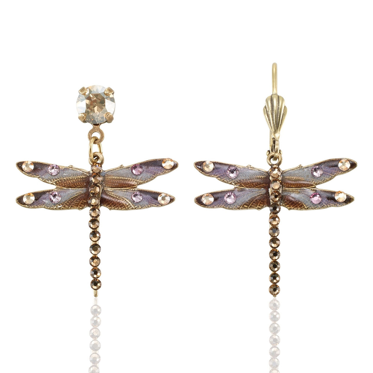 Large Mocha and Lavender Dragonfly Crystal Earring