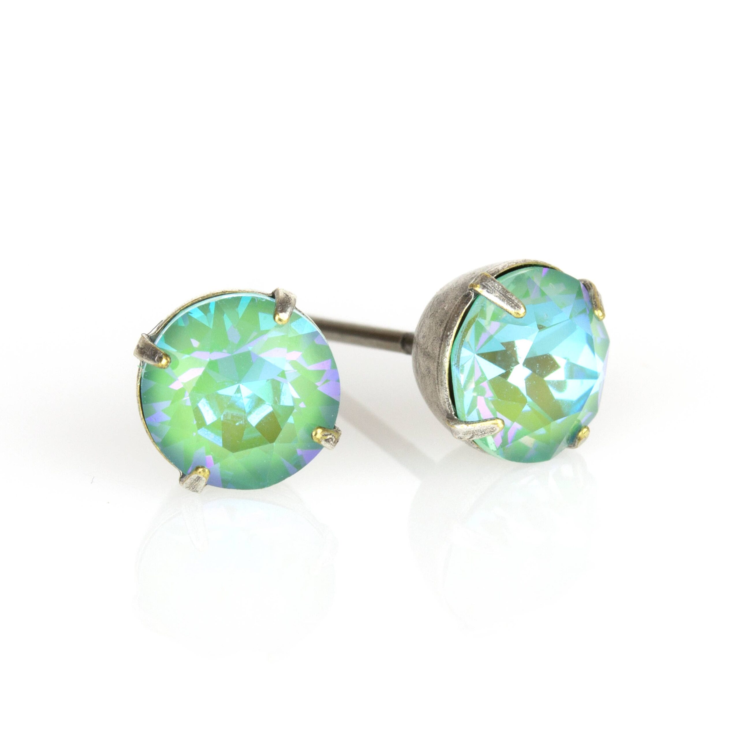 Simple Silky Sage Crystal Stud Earring-Silver-6mm